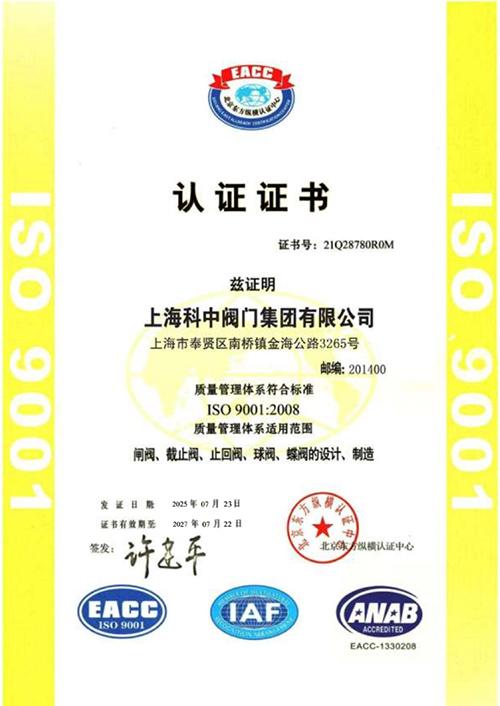 上海科中阀门集团有限公司(蓝高阀门有限公司)是一家集开发、制造、销售各种蝶阀、全焊接球阀、闸阀、截止阀、止回阀、球阀、锻钢阀门等系列阀门的专业公司。我公司自创建以来,就立足于科技不断创新,开发新产品,产品按照国际标准API、ANSI、JIS、ISO、BS及JB、GB,HG国内先进标准生产,我公司拥有锻模热处理机械加工、焊接、装配等设备,并设有CAD阀门设计及质量检测试验中心。强有力的生产设备和完善的检测手段,从而有效提高产品质量,使用户的利益得到有效保障。我公司产品具有结构先进、生产工艺精湛、规格齐全、质量上乘等特点。并且和国外阀门企业有友好合作关系合作。